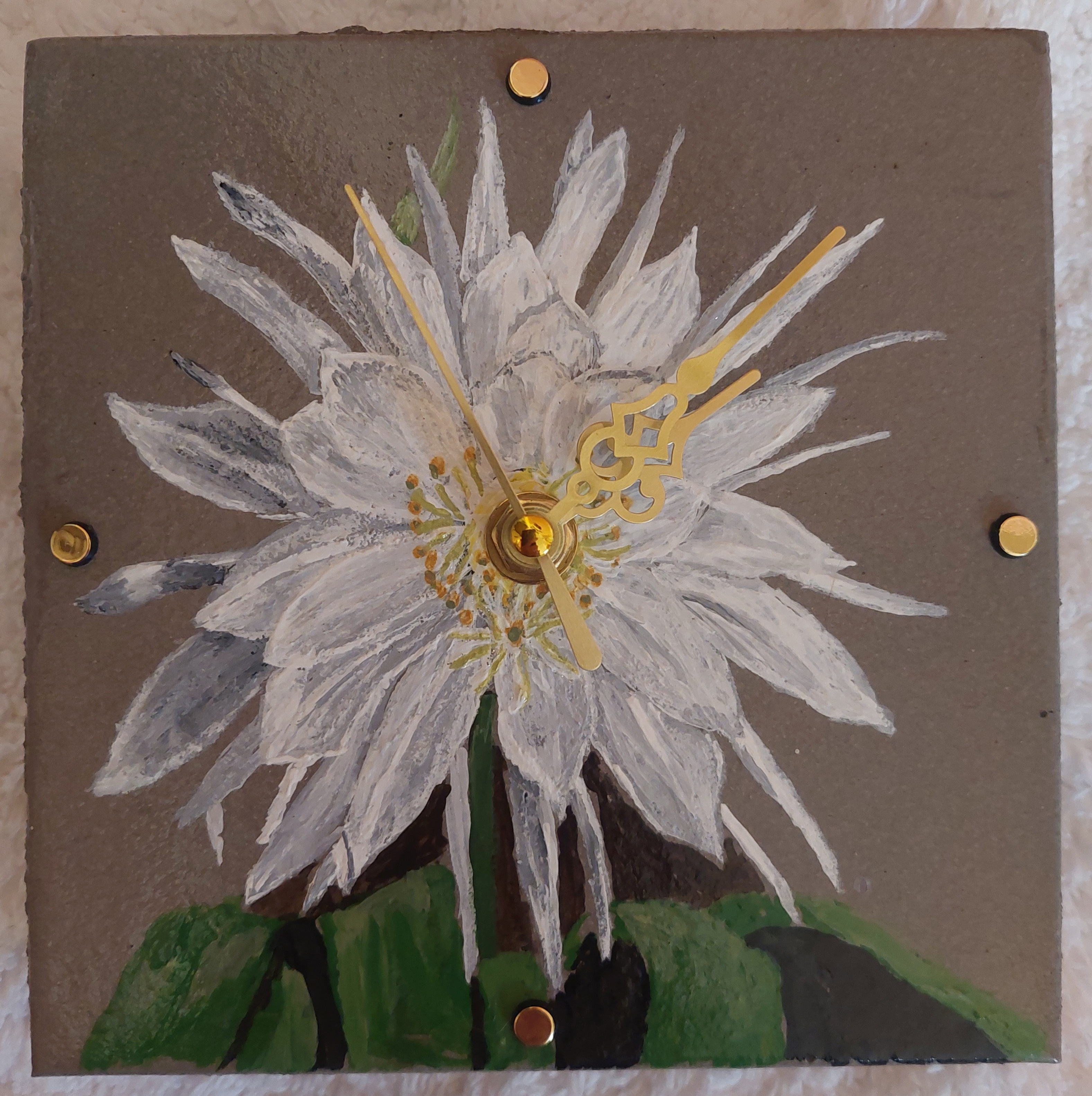 Our unique hand-painted tile clocks are made from pre-used Habitat Restore tiles that are painted in colorful acrylic to depict stunning Colorado/Southwest scenery, adorable dogs/cats, and gorgeous flowers. These are NOT photo transfers – they are handpainted based on my photography. Each one is 100% one-of-a-kind. Clocks are 4×4, 6×6, and 8×8 inch sizes. Each comes with a stand for use on a desk or shelf. They can also be hung on the wall.