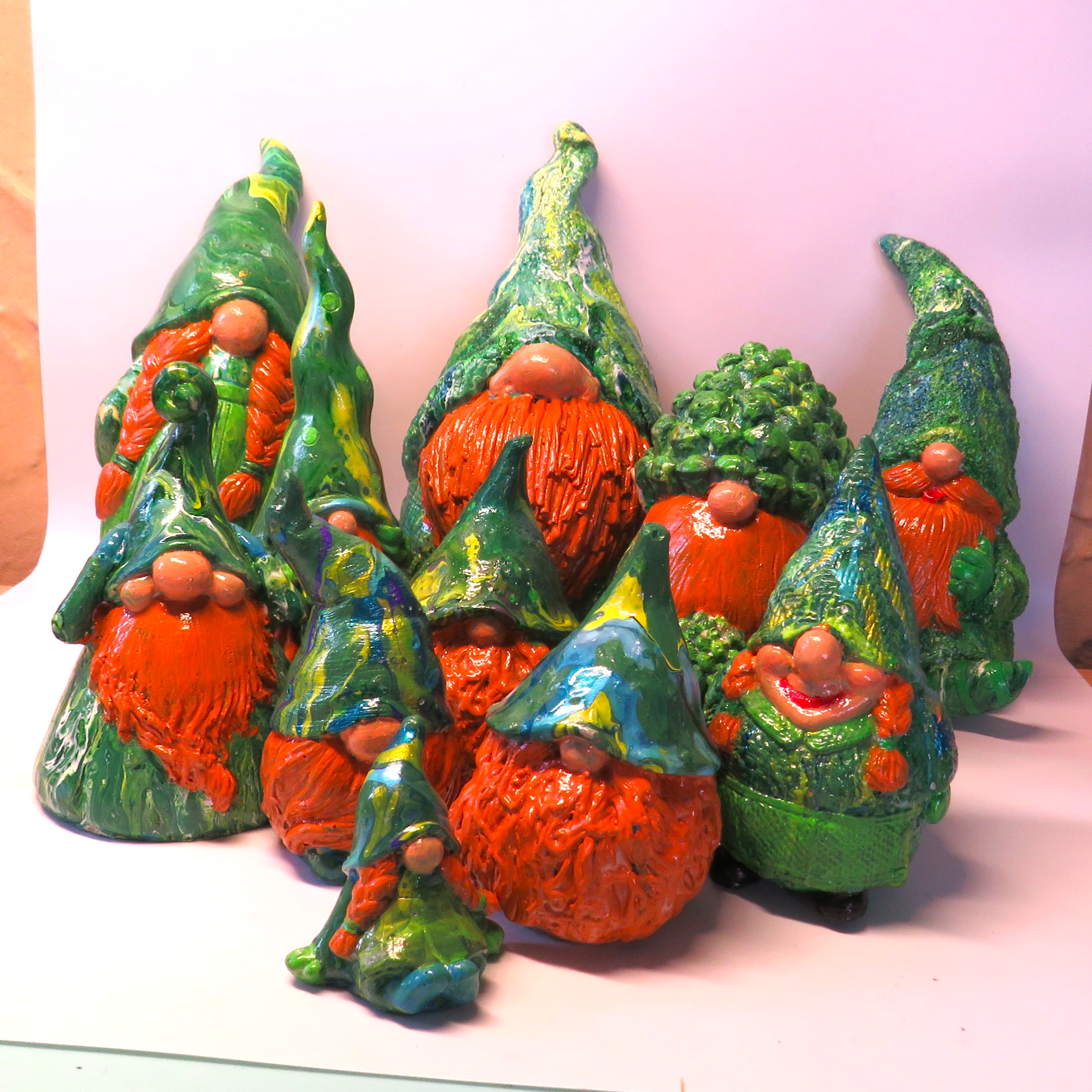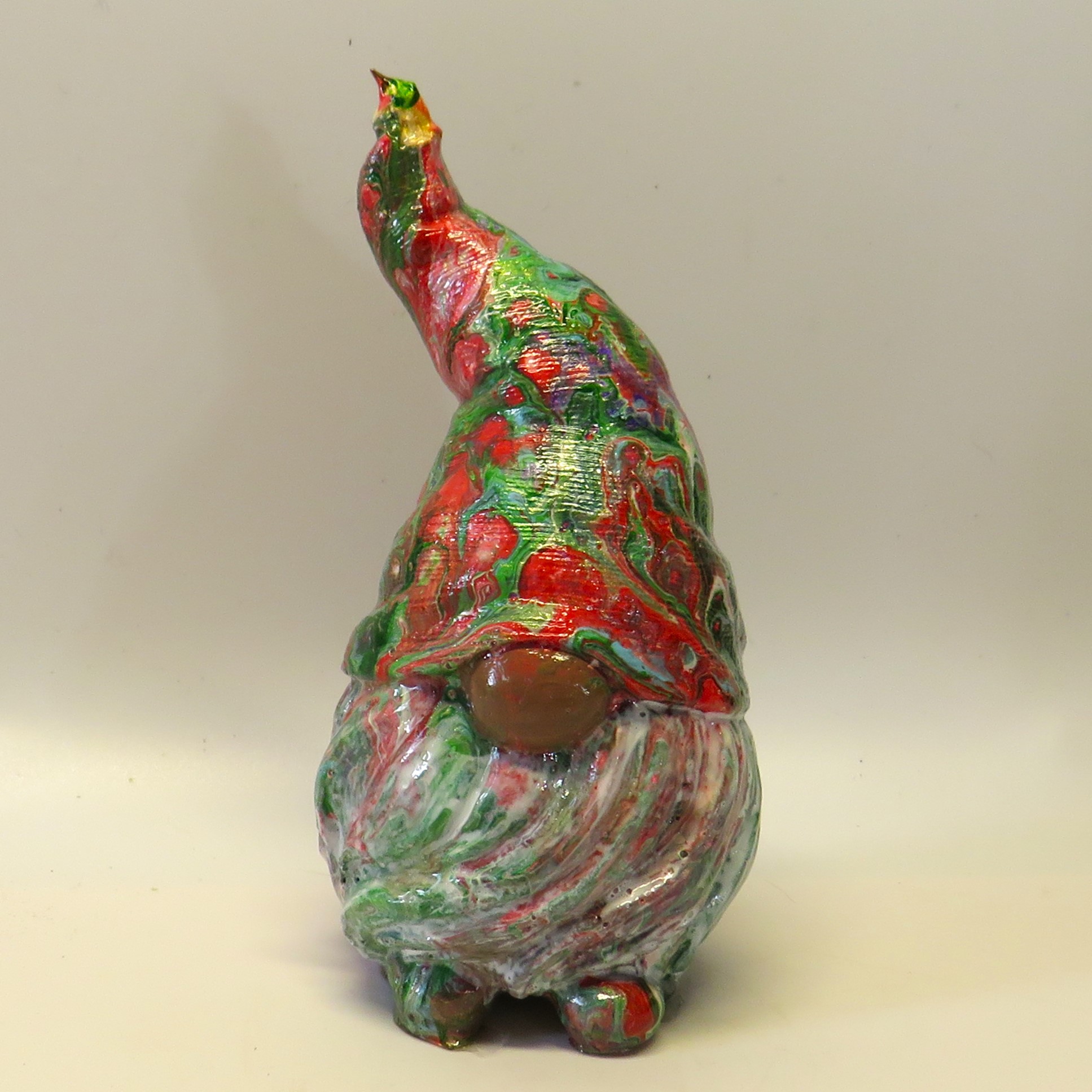 Don’t like pink? My gnomes come in different colors. I have some traditional red and green combo gnomes. I do pour paint to align with major holiday themes. These include fall (Halloween and Thanksgiving), Christmas (winter), Valentine Day, and Saint Patrick’s Day (leprechaun style). Coming soon are Easter (spring) and 4th of July (summer) themes.