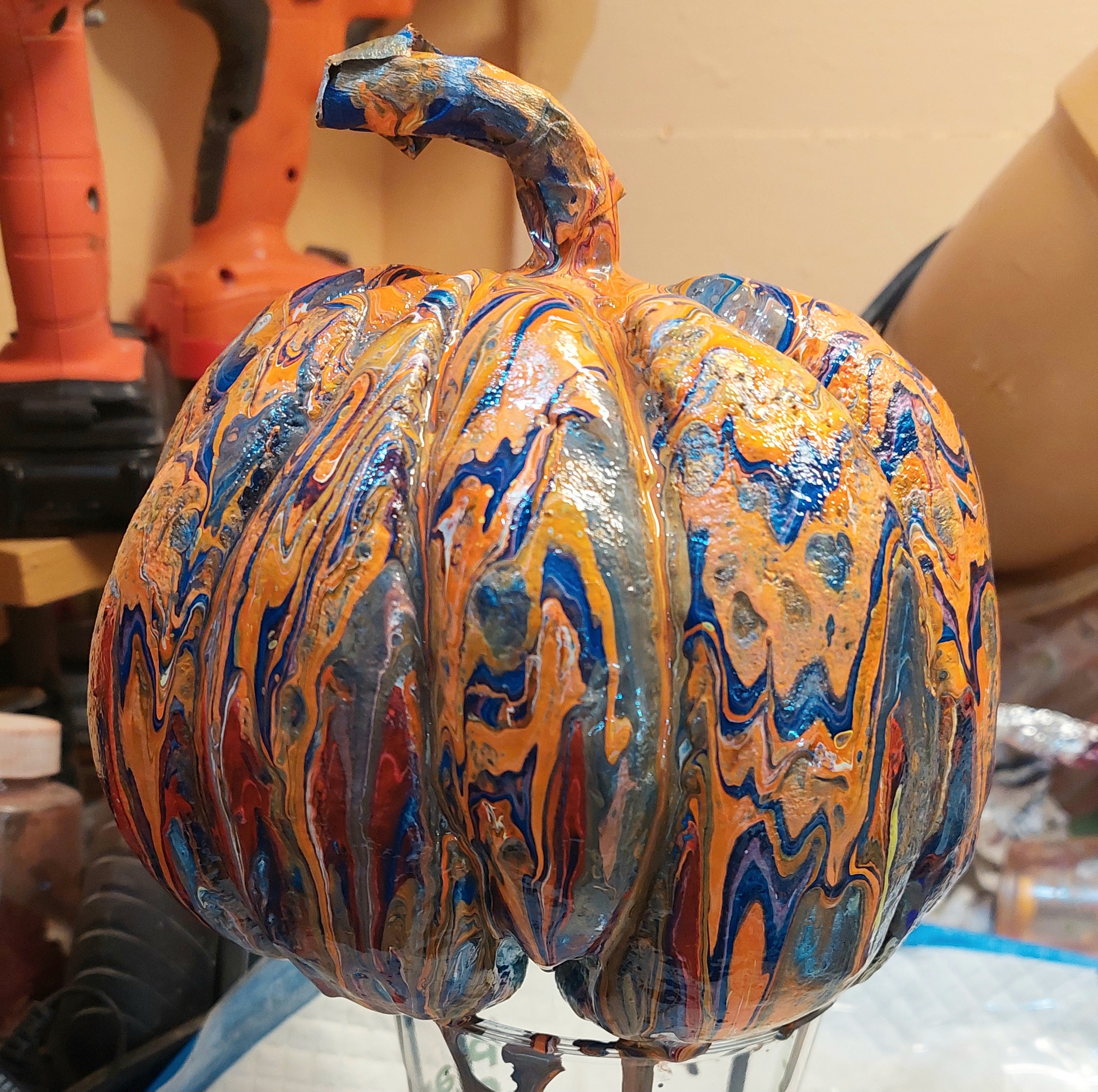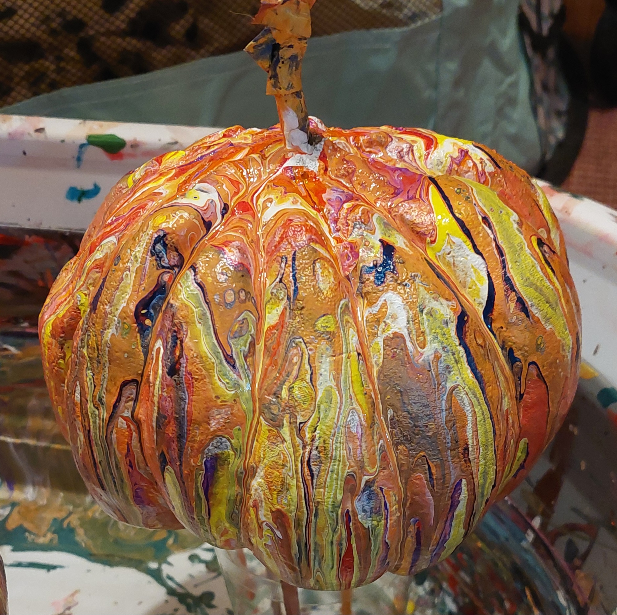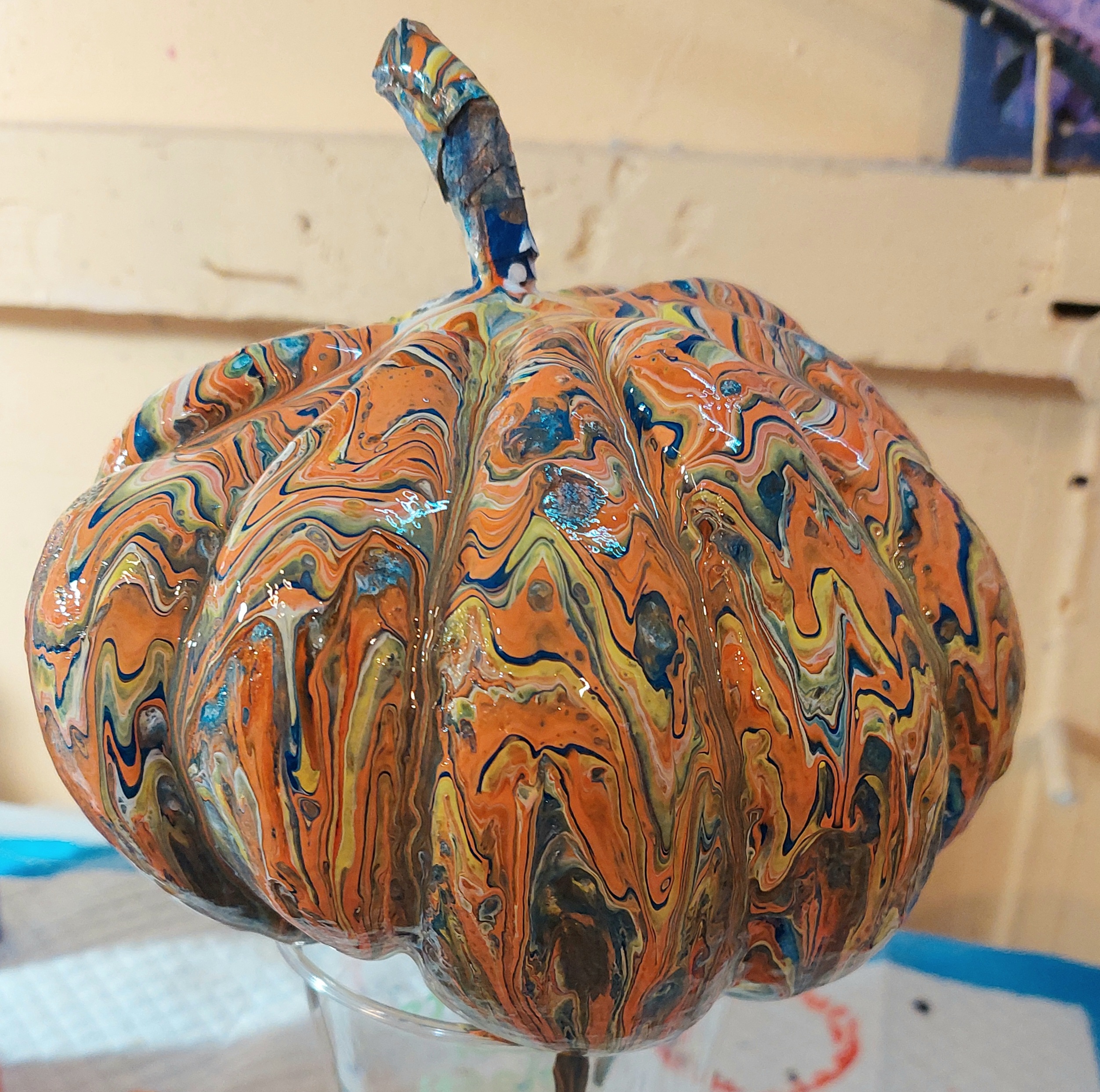 I use acrylic fluid art and then seal with craft varnish, making these perfect for indoor or outdoor decor. Here is a short Instagram reel showing my process.