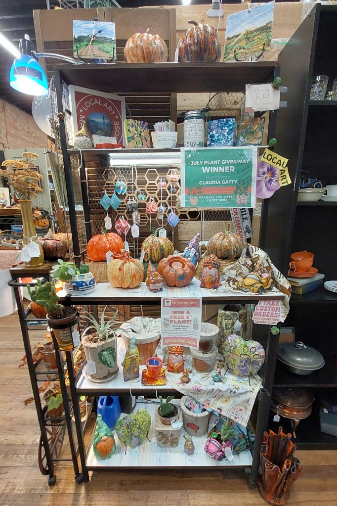 I also sold the reddish one at Country Flair! But the rest are ready and available for adoption at Country Flair. Only $26! I also have some of the planters/candle holders that are left from last year down at my booth. It looks like fall has landed at Art from the Hartt.